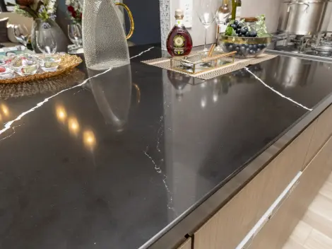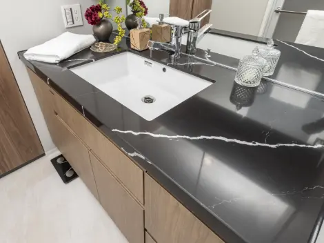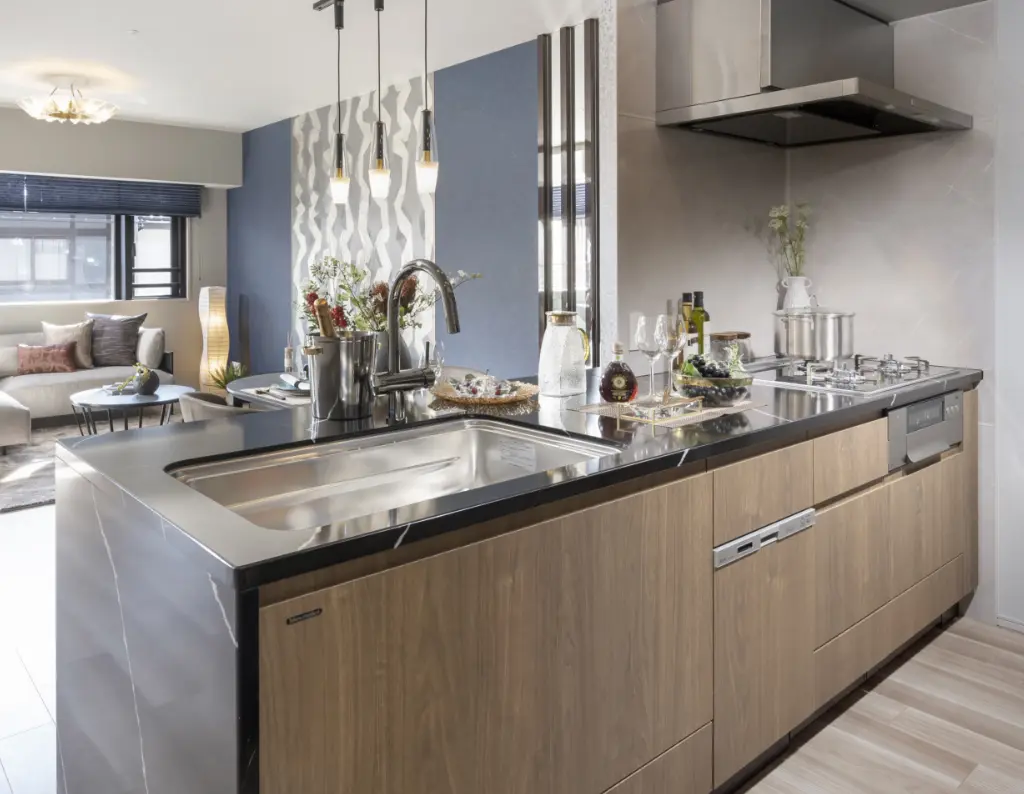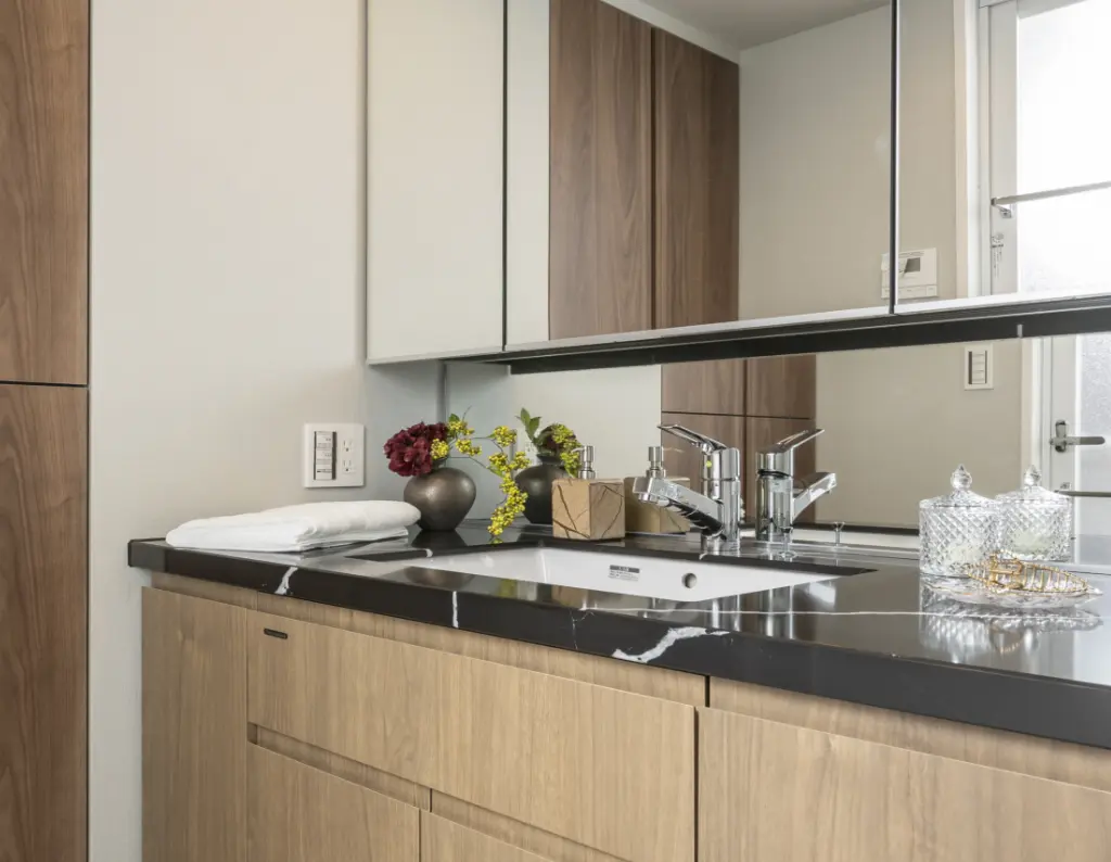カウンターカウンタートップには美観と耐久性を兼ね備えたフィオレストーンを採用。 洗練された雰囲気を演出します。