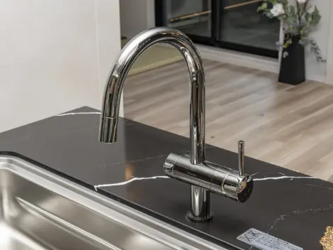 シャワー水栓おいしい水が手軽に使える浄水器付水栓。 ヘッドが引き出せるのでお手入れも快適です。