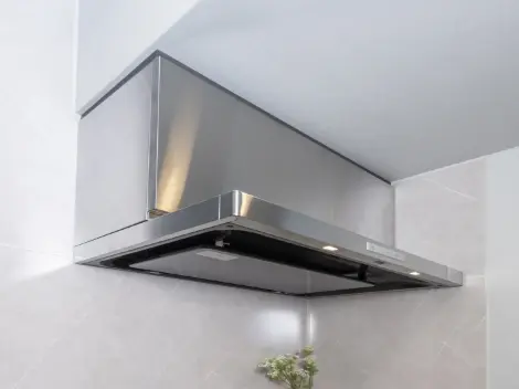 ステンレス仕上げのスタイリッシュなデザイン。 料理中の煙やニオイを強力に排出するホーロー製の整流板付です。