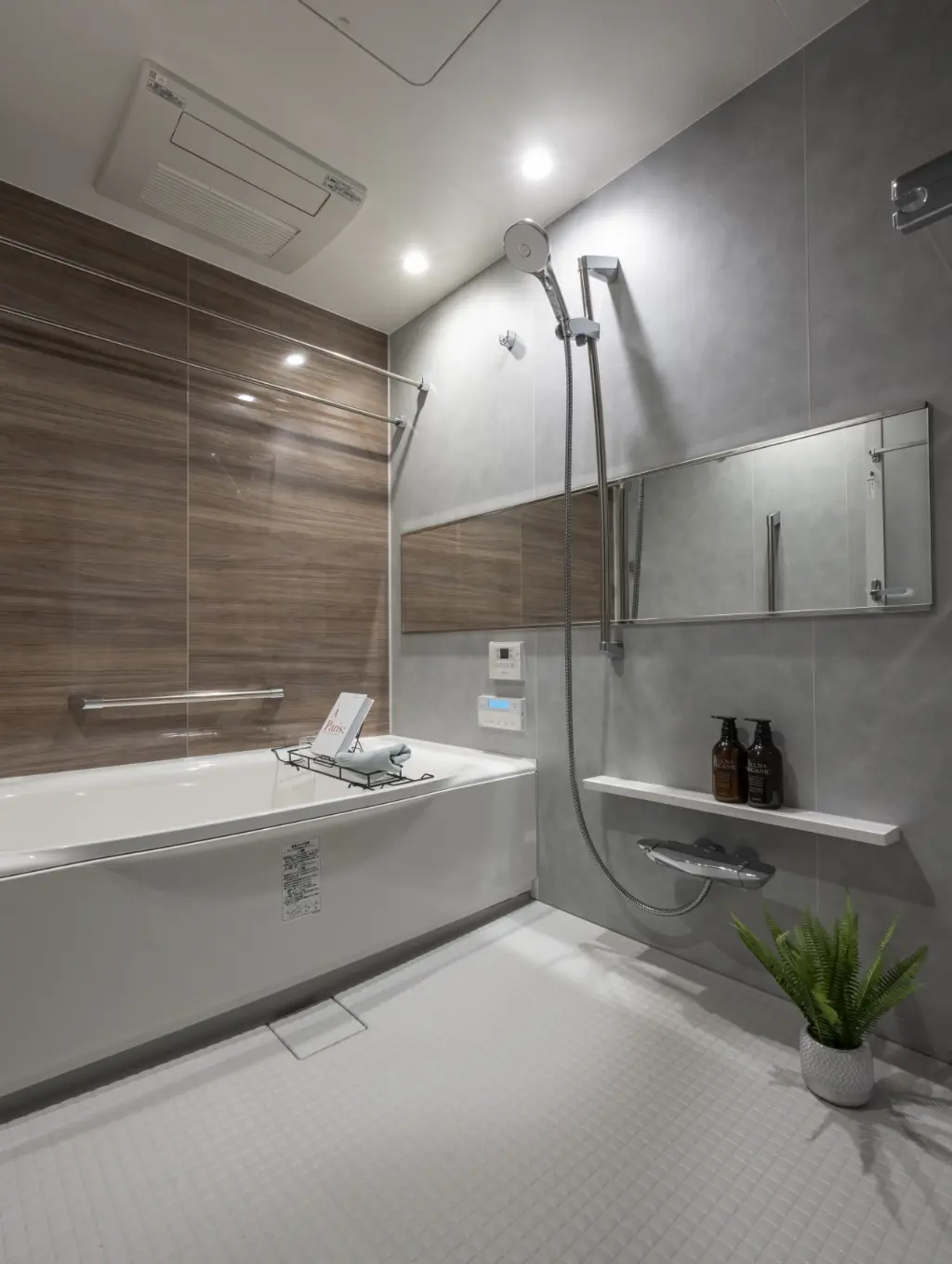 浴室暖房乾燥機寒い日の予備暖房や雨の日の洗濯乾燥にも便利。 室内に新鮮な空気を取り入れる24時間換気機能付です。 マイホームエステが気軽に楽しめるミストサウナを標準装備。