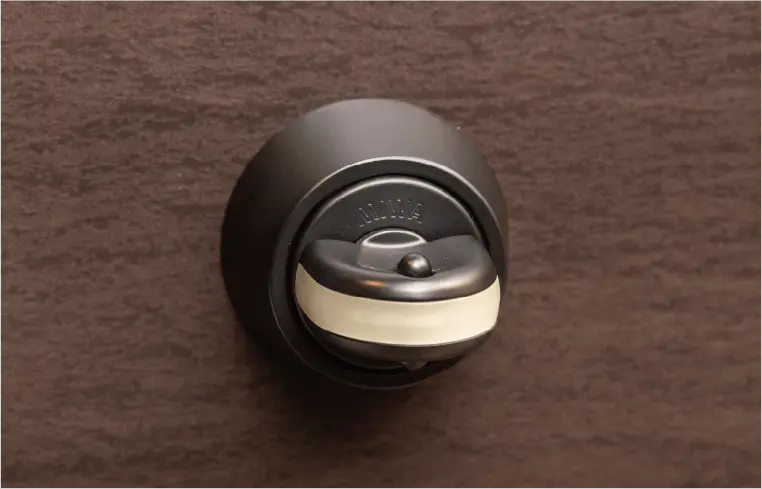 ボタンを押して、回すというツーアクションで使用するため、針金などで引っ掛けて回すといった手口を防止します。