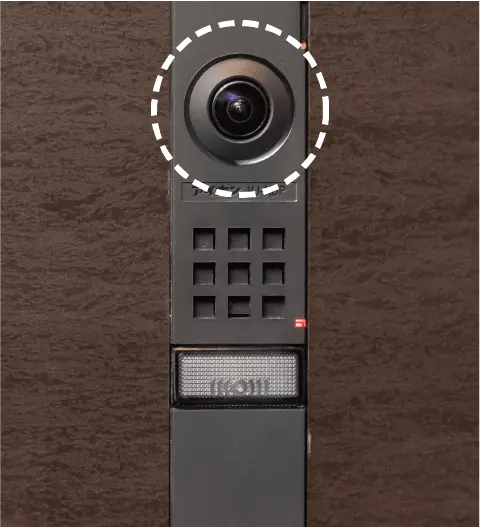各住戸の玄関前にもカメラを設置しました。映像は左右画角約170°を実現。 見たいところを直接タッチするだけで、簡単に映像をズームアップすることができ、ズーム画面表示中は画面の移動も可能で、カメラから離れた位置にいる来訪者や、カメラを避ける不審者も確認できます。